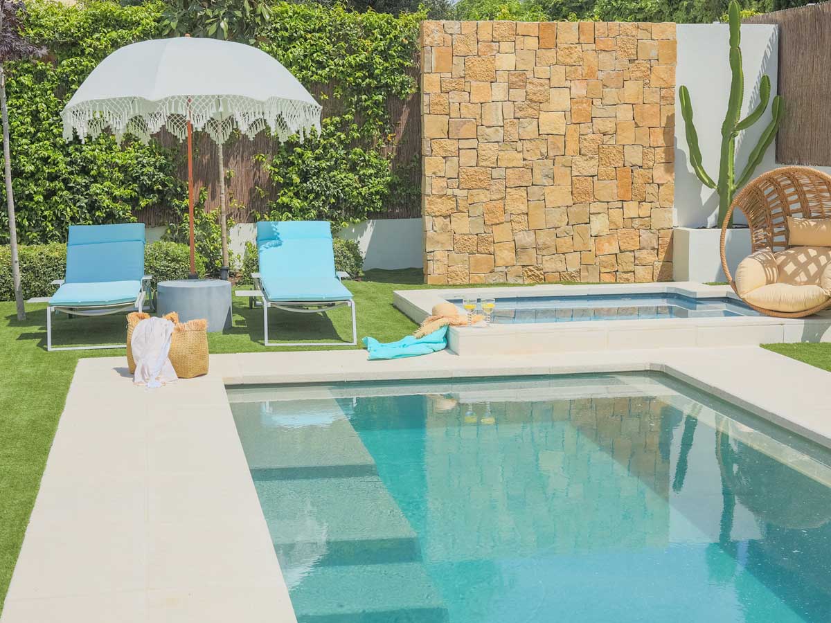 Además, tiene un innovador sistema desbordante, sencillo de instalar ya que forma parte de la propia piscina, consiste en un elegante cascada que recoge el agua, sin skimmer, lo que permite que el nivel de agua suba prácticamente hasta el borde de la piscina con un efecto casi infinity. Solo disponible en terminación Gel-Coat.
